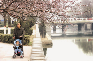 石家庄民心河畔,初春的暖风拂煦,白色、红色的桃花或迎风盛开、或含苞待放,美丽的桃花让市民感受春天生机勃勃的脚步。