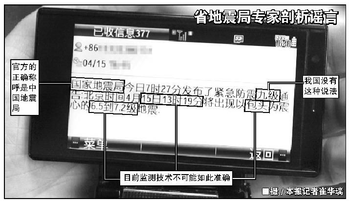 “如果信息涉及‘某地某时’这样精确的数据时,绝对是谣言。”省地震局办公室副主任刁建新告诉记者,目前世界上的地震预报技术还不可能精确到“某地某时”。