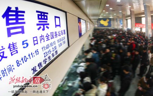 石家庄火车站售票大厅内挤满了排队购票的旅客,不仅如此,大厅外加开的售票窗口处旅客也排起购票长队。随着“五一”火车票的提前开售,石家庄火车站也迎来了“五一”购票高峰。同时,为配合上海世博会的安保工作,石家庄火车站再次启动曾在北京奥运会期间实行的安检措施,并有所加强。