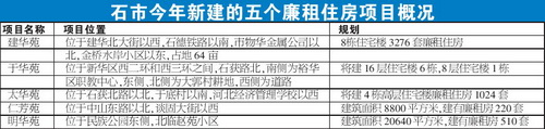五个廉租住房项目开工“目前石家庄有五个廉租住房项目正在开工建设,这五个项目分别是建华苑、于华苑、太华苑、仁芳苑和明华苑。”石家庄市住房保障和房产管理局相关人士告诉记者。