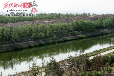 昨日下午,记者来到“三环水系”西侧与装苑路交叉口附近,看到了道路南侧防护林带内的建筑垃圾。防护林带内的树木已经有十来米高,而堆在一起的建筑垃圾竟然和这些树木的高度相似,堆得如此高的建筑垃圾在路上蔓延了近50米长。