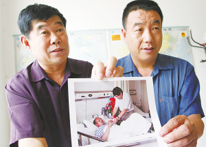 ■周田车和郝俊臣展示看望周中强的照片。