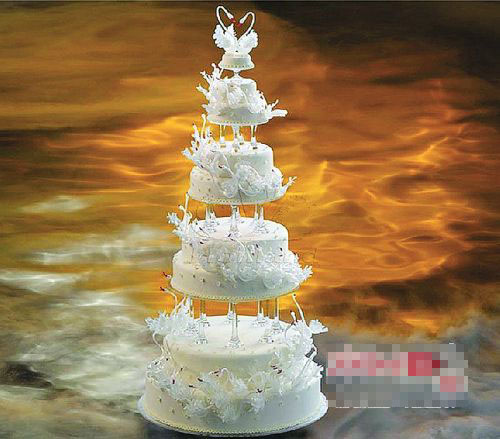 这个蛋糕上下总共9层,高度为220厘米,只比姚明矮了一点儿,每两层之间用水晶柱支撑。蛋糕上面镶嵌有99只天鹅和999朵雏菊,每只天鹅的神态各异。蛋糕是用四种巧克力加上各种辅料搭配出来的,共调配出5种不同的味道。标价为1999999。