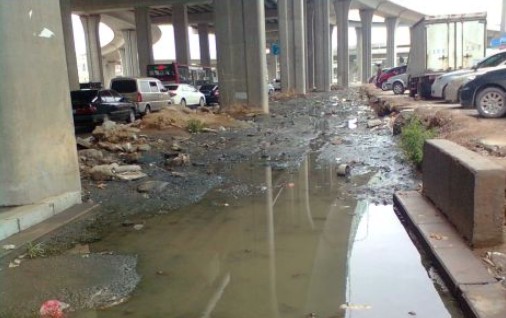 据停车场的保安说,自高架桥建好后,桥下的坑至今都无人修缮,坑边的下水道也经常堵。路旁小区的业主生活受到影响,多次找物业反映下水道化粪池堵塞问题,物业在路边的地下安装了管道,小区门口的一个井不冒水了,但坑沿另外几个井的问题没人管,下雨的时候还是涌水。后来,坑边上铺了些沙石,车辆能勉强通过。但一下雨,铺沙石的地方就又变得坑坑哇哇起来。