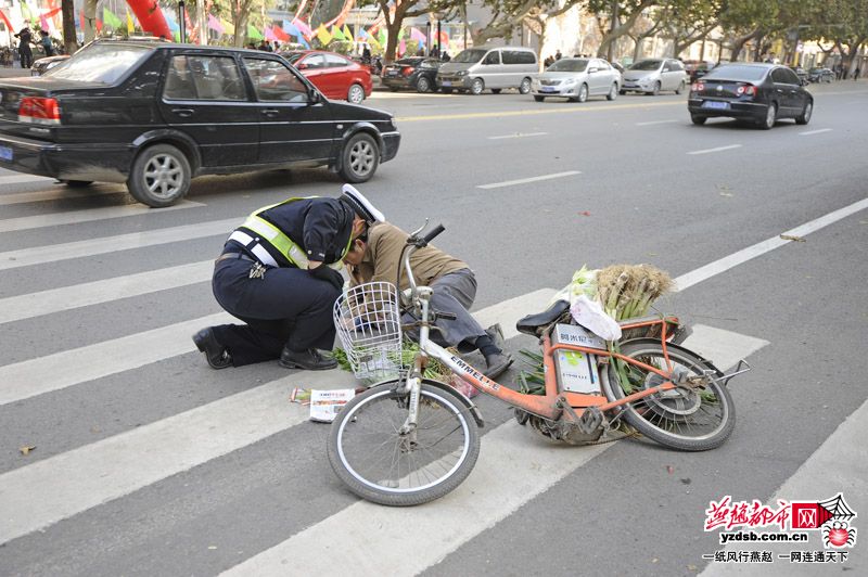 13日上午10点10分左右,中山路省中医院南侧一辆机动车和行人发生碰撞,中医院门口执勤交警跑过来询问伤者,本是围观,但是交警车流中长时间的“下跪”令我感动,令我明白了什么叫俯首甘为孺子牛。于是掏出相机悄悄的拍下这一刻